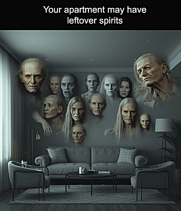 I have found leftover spirits in most of the houses I have lived in, and I have taken the time to clear them out to keep the places as happy as possible. We had failed to do this in our current apartment, as we had attention on other things, like hospital visits and invalid care. My wife asked me to look in our bedroom closet today because she did not feel comfortable going in there, and we found a ghost of a German Shepherd dog who was stuck in there because of an unfortunate incident. We communicated with him and sent him to a meadow behind our former house in Floyd, VA, where he can chase the rabbits, raccoons, and bears that visit the meadow. The closet is now empty of unhappy spirits, and this makes for a happier household.